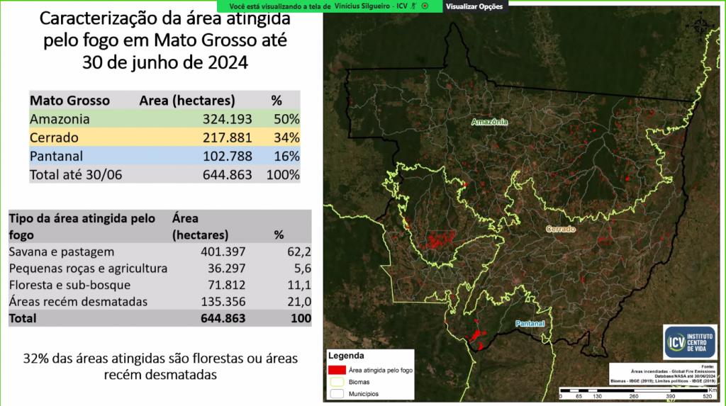 Half the areas affected by fires in Mato Grosso are in the Amazon biome