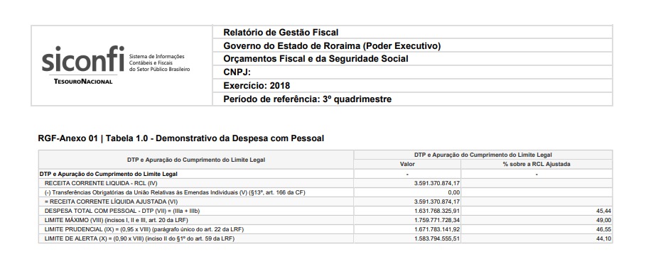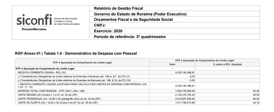 A comparative analysis of the reports from 2018 to 2021 shows that, in the years he was in charge of the State Government, Denarium was above the alert limit in at least one year: 2019. At the time, the percentage spent on personnel reached 45.73%, even higher than the previous year (45.44%), when the state had its accounts and fiscal balance compromised and the then governor, Suely Campos, was removed from office, which put the state under federal intervention and anticipated the inauguration of Antonio Denarium as governor. The following year, in 2020, the percentage in the last four months was 42.35%.