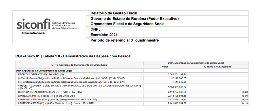 Despite the increase in real values, Roraima remained below the alert limit determined by the Fiscal Responsibility Law (PRF) for spending on staff, using, in 2021, 38.21% of adjusted Net Current Revenue (RCL), held last year, which totaled R$ 5.536 billion. The law stipulates as an alert limit for states, the application of up to 44.10% of the RCL with the payment of public service; for the prudential limit, the percentage is 46.55%; the maximum limit is posted at 49%.