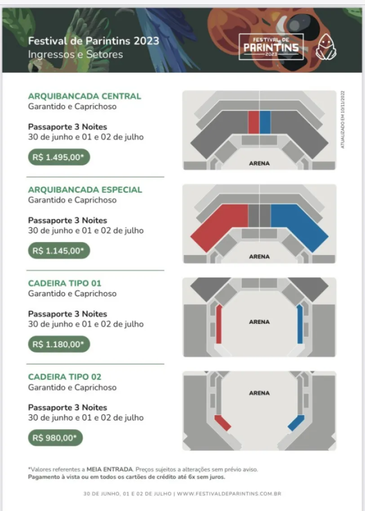 On the websites of Caprichoso and Garantido there is no transparency of ticket sales or what led to the choice of Amazon Best. The company was sought to talk about the subject and made available only the map of the seating areas of the bumbódromo and the ticket prices. The reporter requested the document and details about the percentages given to the bulls by Amazon Best, but did not get a reply.