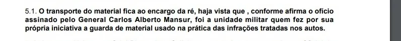 “The transport of the material is the responsibility of the defendant, given that, as stated in the letter signed by General Carlos Alberto Mansur, it was the military unit who made on its own initiative the custody of material used in the practice of offenses addressed in the records”, says an excerpt of the decision.