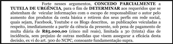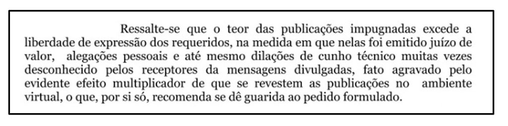 The magistrate further emphasizes that the publications exceed the freedom of expression, “to the extent that value judgment was issued therein”. The judge also adds that the issue about the ICMS rate, as well as the modifications through Executive Power acts, should be analyzed by a competent court.