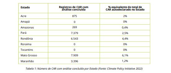 Data from the Climate Policy Initiative reveals this situation based on the ratio between CAR registrations with analysis completed and the total number of registrations awaiting validation by the states. So far, only 2% have been validated. Among the nine Amazonian states, only Mato Grosso had a completion rate higher than 5%.