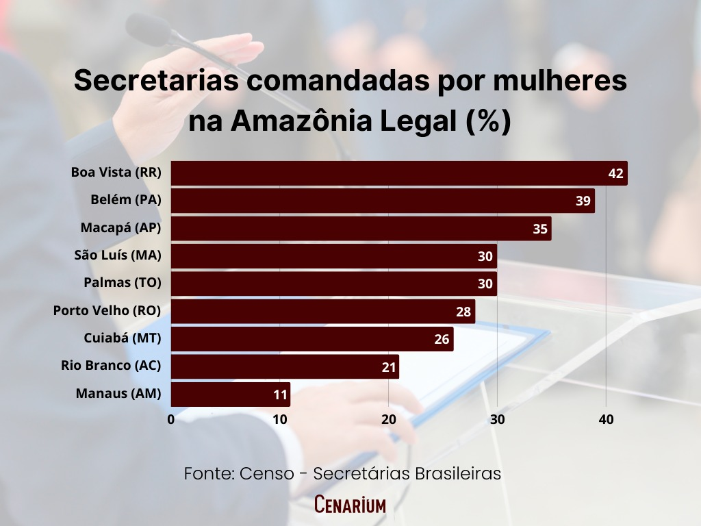MANAUS (AM) – The first edition of the “Census – Brazilian Secretaries” survey, conducted by a committee comprising the Aleias, Alziras, Foz and Travessia Political Public Institutes, revealed that Manaus ranks last among the capitals of the Legal Amazon in terms of women leading municipal departments. In the ranking of capitals within the biome, Boa Vista (58%) and Belém (39%) lead with the highest percentage of women heading municipal departments.