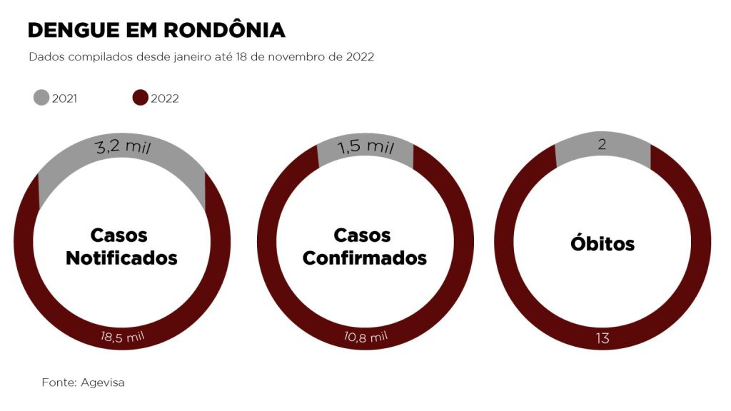VILHENA (RO) – The alert that gathers data compiled since July this year, from the State Agency for Health Surveillance (Agevisa), points out that ten, from the 52 municipalities in Rondônia, are facing dengue outbreaks, a disease that grew more than 600% in the State, in 2022.