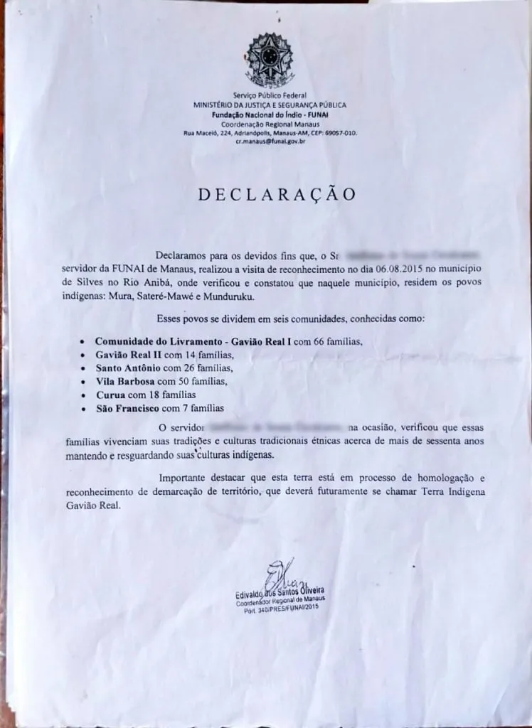 In the midst of a debate about the demarcation of land in the vicinity of the Azulão Complex, the National Foundation for Indigenous Peoples (FUNAI) has taken a stand in a document sent to the Federal Public Prosecutor’s Office. Funai documents attest to the presence of indigenous communities and that there is a process underway to ratify the territory.