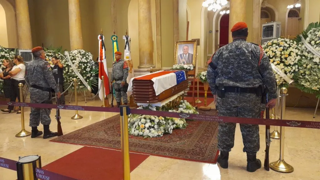Amazonino’s body arrived at the Teatro Amazonas around 1pm. Upon arrival at the theater, the body was received by Amazonino Mendes’ niece, Monica Mendes. The first tributes, at the place, started at 2pm and were reserved for family members and authorities.