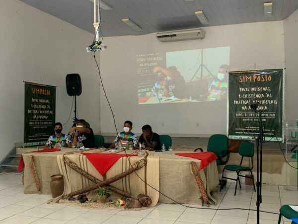 The symposium takes place in the auditorium of the Superior Normal School of the Amazonas State University (UEA/ENS) and also debated the Law Projects 191/2020, about mining in indigenous lands, and 490/2007, referring to the temporal mark.
