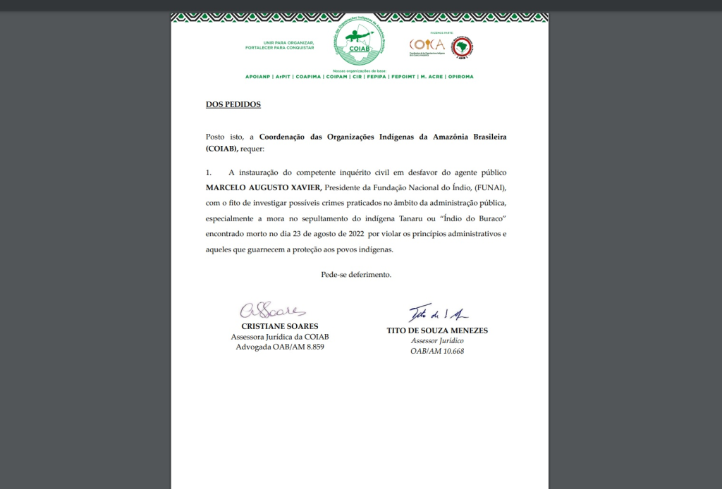 The decision was poorly received by the Coordination of Indigenous Organizations of the Brazilian Amazon (Coiab), which filed a complaint with the Federal Public Ministry (MPF) against the manager of the foundation for the delay in providing answers about the burial.
