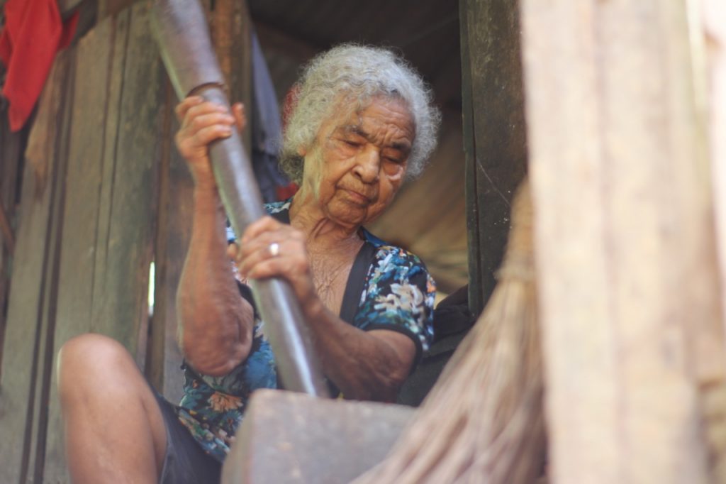 “If it needs to be done, it will be done!” Is the phrase that Marina, at the height of 84 years old, uses to translate what she considers to be a challenge. For her, climbing a tree to harvest and carrying a tambourine with 50 kilos of mandioca are common tasks.