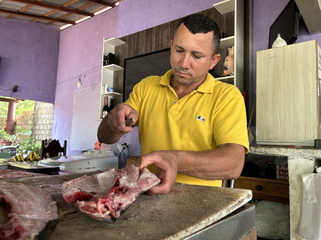 Edson da Silva Oliveira, 40, owner of a fish market in a peripheral neighborhood of the capital, Boa Vista, reveals his anguish about the future. He has worked in the field for over eight years and supports his family through fish sales. In recent years, his concern and anxiety about climate consequences have increased.