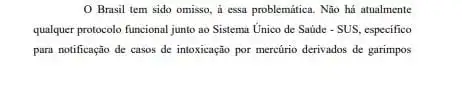 “There is currently no functional protocol with the Single Health System (SUS) specifically for reporting cases of mercury poisoning from illegal gold mining in the Amazon, leading to underreporting of cases and, as a result, an absence of protocols for identification and treatment of those affected. Besides this, the political stimulus of recent years and the absence of effective inspection have contributed to the increase in illegality and the advance of mining into new areas”, points out the report.