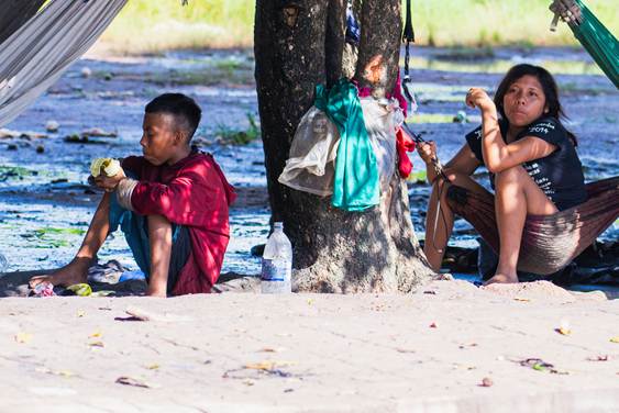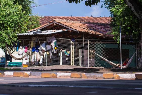 Anyone passing daily under the Pery Lago Overpass can see these groups gathered around the “Feira do Produtor” (Producer’s Market) in the West Zone of the capital, which has become a makeshift shelter for Indigenous people living in vulnerable conditions. They tie hammocks to sidewalks and unused structures at the market.