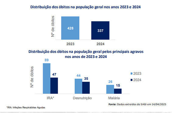 Amid child malnutrition among Indigenous children in Boa Vista, the bulletin shows that in 2024, 35 people died due to this cause, down from 44 deaths in 2023. In this nutritional context, monitoring of children under age 5 by the Food and Nutrition Surveillance System increased, improving health outcomes for these patients.
