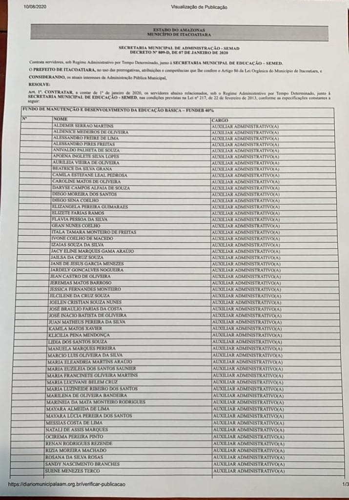 Segundo a assessoria da prefeitura de Itacoatiara, a contratação dos 80 servidores, tem amparo legal. “Procede a contratação desses profissionais. São 80 servidores que irão atuar na Secretaria Municipal de Educação (Semed). Todos eles participaram de processo seletivo no ano passado e sendo ou não, ano de eleição, esse ato acontece anualmente e está dentro da legalidade”, afirmou a assessoria.