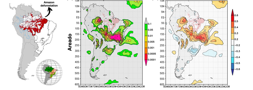 Preocupantemente, o estudo demonstrou que o “arco do desmatamento Amazônico”, região que concentra o desmatamento na borda leste da Amazônia, já concentra anomalias climáticas em decorrência da perda da floresta que impactam negativamente na evapotranspiração. Consequentemente, isso tem causado a perda de umidade e de chuvas que são transportadas para o sul e sudeste do Brasil.