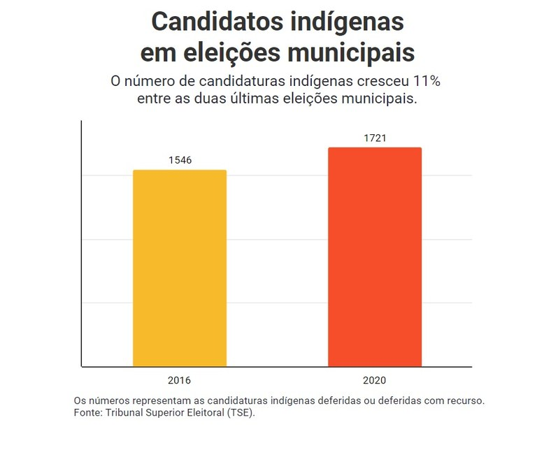 Os últimos dados do TSE sobre as eleições municipais mostram que, na comparação entre os pleitos de 2016 e de 2020, as candidaturas indígenas aumentaram significativamente, mas a representatividade dos povos originários ainda é baixa.