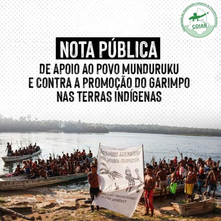MANAUS – Após o Ministério Público Federal no Pará (MPF/PA) receber uma carta do povo Munduruku, que busca expulsar garimpeiros ilegais de seus territórios tradicionais, a Coordenação das Organizações Indígenas da Amazônia Brasileira (Coiab) manifestou nesta terça-feira, 1º, estrito apoio aos indígenas e expressou, novamente, repúdio ao governo Bolsonaro contra a regulamentação do garimpo no Brasil.