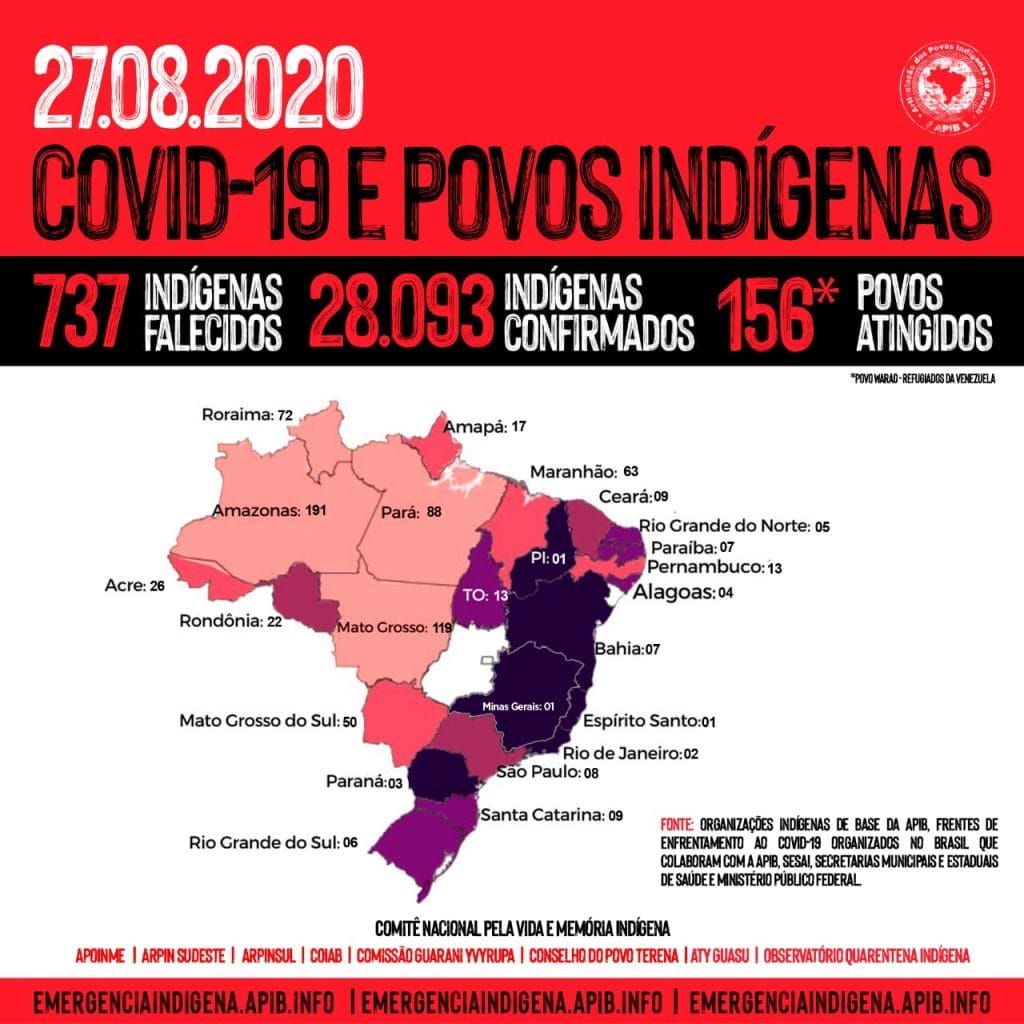 A última atualização do boletim epidemiológico do Ministério da Saúde, também divulgada na quinta-feira, informou ainda que 22.579 indígenas estavam infectados com novo Coronavírus até o momento no Brasil. Já a Coiab revelou que o número exato era 24% maior: 28.093 casos.