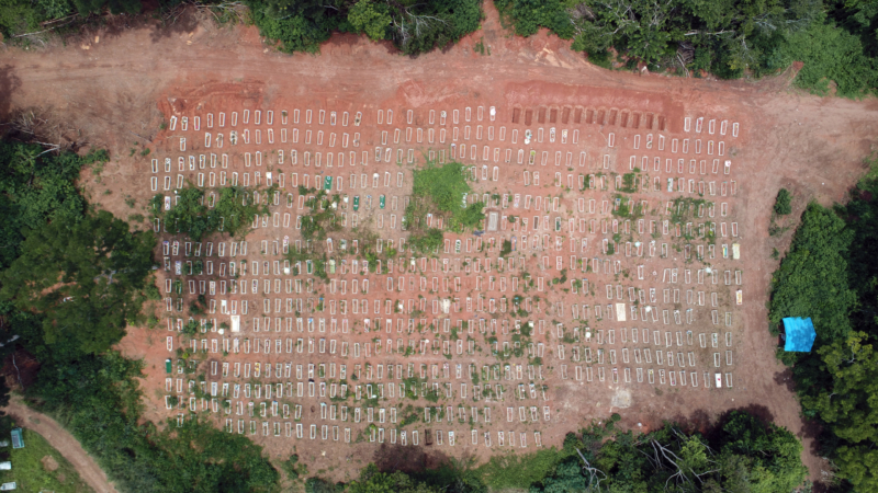 Já o mês de abril foi marcado pela superlotação do cemitério Santo Antônio, localizado na capital Porto Velho, chegando ao limite de 95 mil sepulturas espalhadas por seus 250 mil metros quadrados. O cemitério foi aberto em 1975 e hoje é o maior em atividade em Rondônia. No ano passado, foram 777 enterros de vítimas de Covid-19 na unidade, numa média de três por dia.