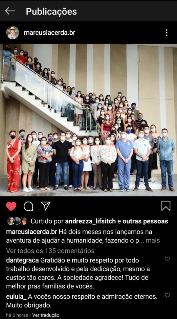 Ainda na publicação desta quinta, Marcus Lacerda reforça. “Após a publicação dos dados, em que demonstramos que a droga não elimina o vírus, e que não se devem tentar doses mais altas, fomos vítimas de uma terrível fake news oriunda de algum gabinete do ódio. […] A sociedade amazonense se calou, e perdeu a oportunidade de defender um dos seus patrimônios: a pesquisa clínica em doenças infecciosas, que aqui tem mais de 40 anos de excelência. Quem cala consente, quem cala apoia o novo regime”, completa.