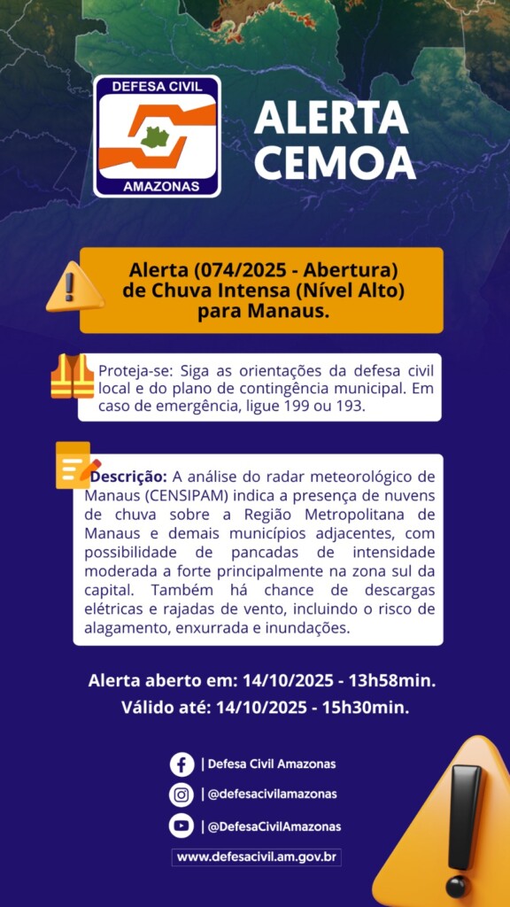“Embora o período atual seja conhecido como “verão amazônico”, marcado pela redução do volume de chuvas, episódios de maior intensidade podem ocorrer em razão da atuação de sistemas atmosféricos de grande escala, como ondas de instabilidade e a maior disponibilidade de umidade. Esses episódios, ainda que menos frequentes, fazem parte da variabilidade climática da região“, disse a Defesa Civil do Estado.