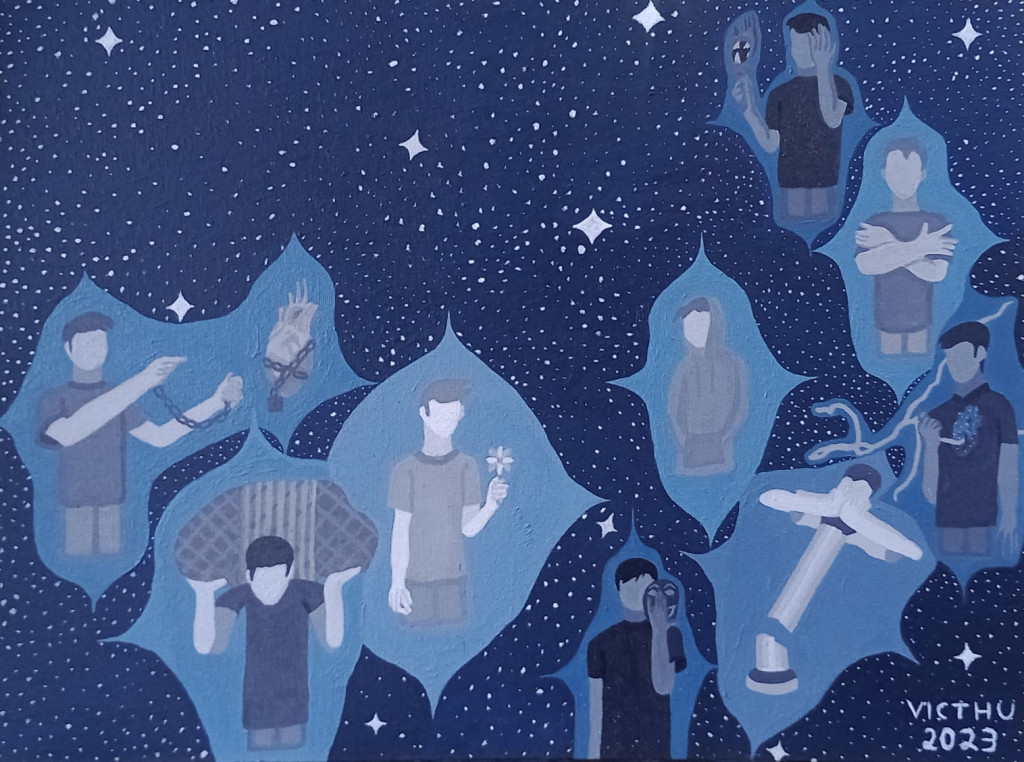 “A minha vivência diante das minhas obras é em expressar meus sentimentos e colocar em obras. Todas estão mostrando cada momento que eu passei. Uma, que não tem título, mostra um pouco sobre estar sozinha e não saber para onde ir. Outras duas falam sobre estar sufocada e cheia de sentimentos, tanto que se chamam ‘A sufocada’ e ‘A flor da pele'”, explica a artista.
