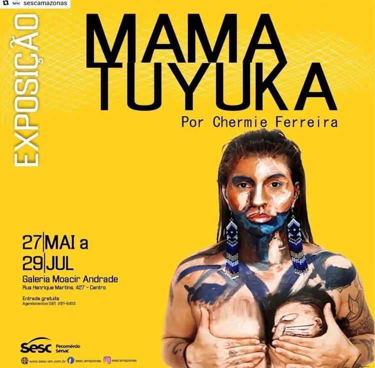 MANAUS – A exposição Mama Tuyuka, ou Mãe Terra para o povo Kokama, tem entrada gratuita na Galeria Moacir Andrade, no Sesc Amazonas, em Manaus. A iniciativa acontece de 27 de maio a 29 de julho deste ano e traz uma série de telas feitas pela artista plástica e grafiteira Chermie Ferreira, que realiza uma combinação de grafite com as artes plásticas. O evento conta com curadoria de Virna Lisi.