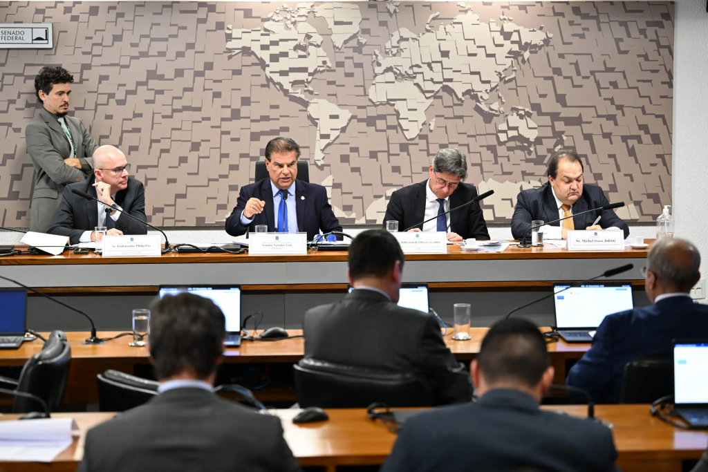 Membros da comissão temporária do Senado têm uma reunião com o ministro das Relações Exteriores do Brasil, Mário Vieira, nesta quarta-feira, 23, que deverá servir para obter informações sobre em que grau estão as tratativas por parte do governo brasileiro com o governo dos EUA em relação ao tarifaço.