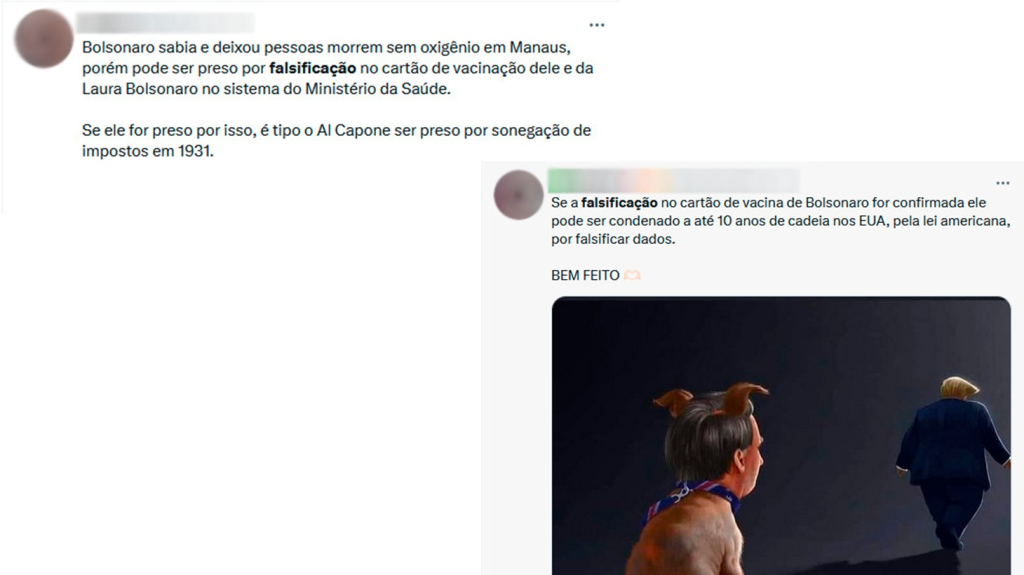 Uma das usuárias relembrou o drama vivido pela população manauara, durante o período mais agudo da pandemia. “Bolsonaro sabia e deixou as pessoas morrerem sem oxigênio, em Manaus, porém, pode ser preso por falsificação no cartão de vacinação dele e de Laura Bolsonaro no sistema do Ministério da Saúde. Se ele for preso por isso, é tipo Al Capone ser preso por sonegação de impostos em 1931”, ironizou.