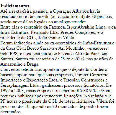 Mas a apuração da PF chegou ao primeiro escalão do governo do Amazonas em junho de 2003, após a descoberta de que as licitações eram dirigidas por secretários e executivos para as empresas de Cordeiro.