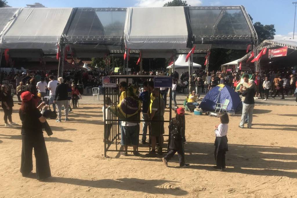 Além da representação da Papuda, a feira também teve outras apresentações teatrais interativas como estande de tiro, urna de voto impresso, mural com fake news, altar de pneus com velas e púlpito para que o público pudesse discursar.