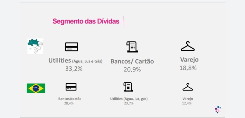 Contrariando a maioria das outras regiões brasileiras onde as principais motivações das dívidas são os cartões de créditos, com 28,4%, o Norte do Brasil lidera o ranking de dívidas por conta das chamadas utilites (água, luz e gás), com 33,2%.