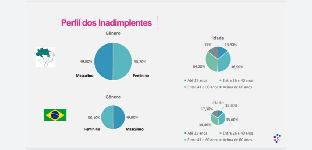 Na Região Norte, o perfil do gênero feminino aparece com a parcela de 50,20% inclusa na lista dos que estão em débito, contra 49,80% do gênero masculino. A idade predominante daqueles que devem estar entre 26 e 40 anos para ambos os gêneros.