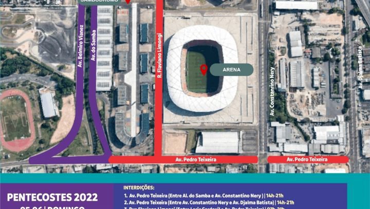 O IMMU também vai fechar a Rua Jornalista Flaviano Limongi, que fica entre a Arena da Amazônia e o Sambódromo, no trecho entre a Avenida Lóris Cordovil até a Avenida Pedro Teixeira, das 7h até as 21h deste domingo.