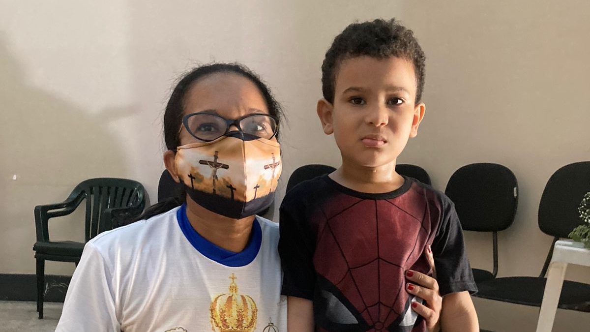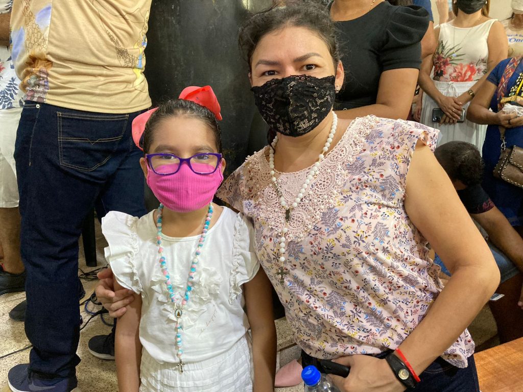 A autônoma Naiana Marrocos, devota de Nossa Senhora de Aparecida, foi à celebração com a filha mais nova, Graça Maria Marrocos, de 6 anos. Ela contou à CENARIUM que a missa representa, para ela, um momento de homenagem e agradecimento.