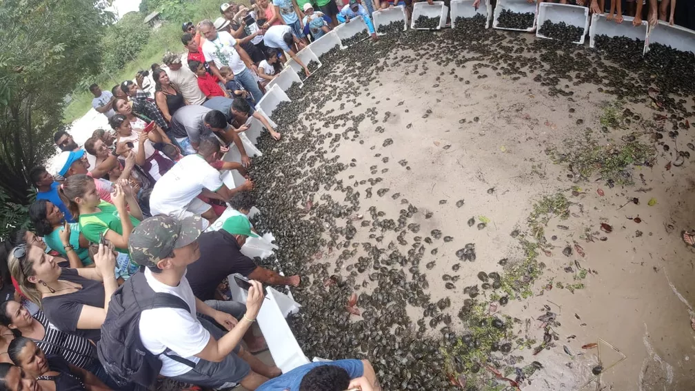 Filhotes de quelônios são soltos nos rios da Amazônia