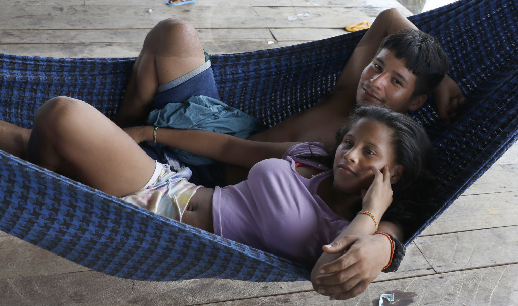 Dionísio é apenas um dos homens que a reportagem encontrou enquanto esteve na estrutura flutuante, ocupada na maioria por mulheres e crianças, que se dividem nos afazeres, preparando carne de caça, peixes e verduras compradas na feira de Atalaia. Redes se estendem ao longo das duas construções de madeira que flutuam no Rio Solimões.