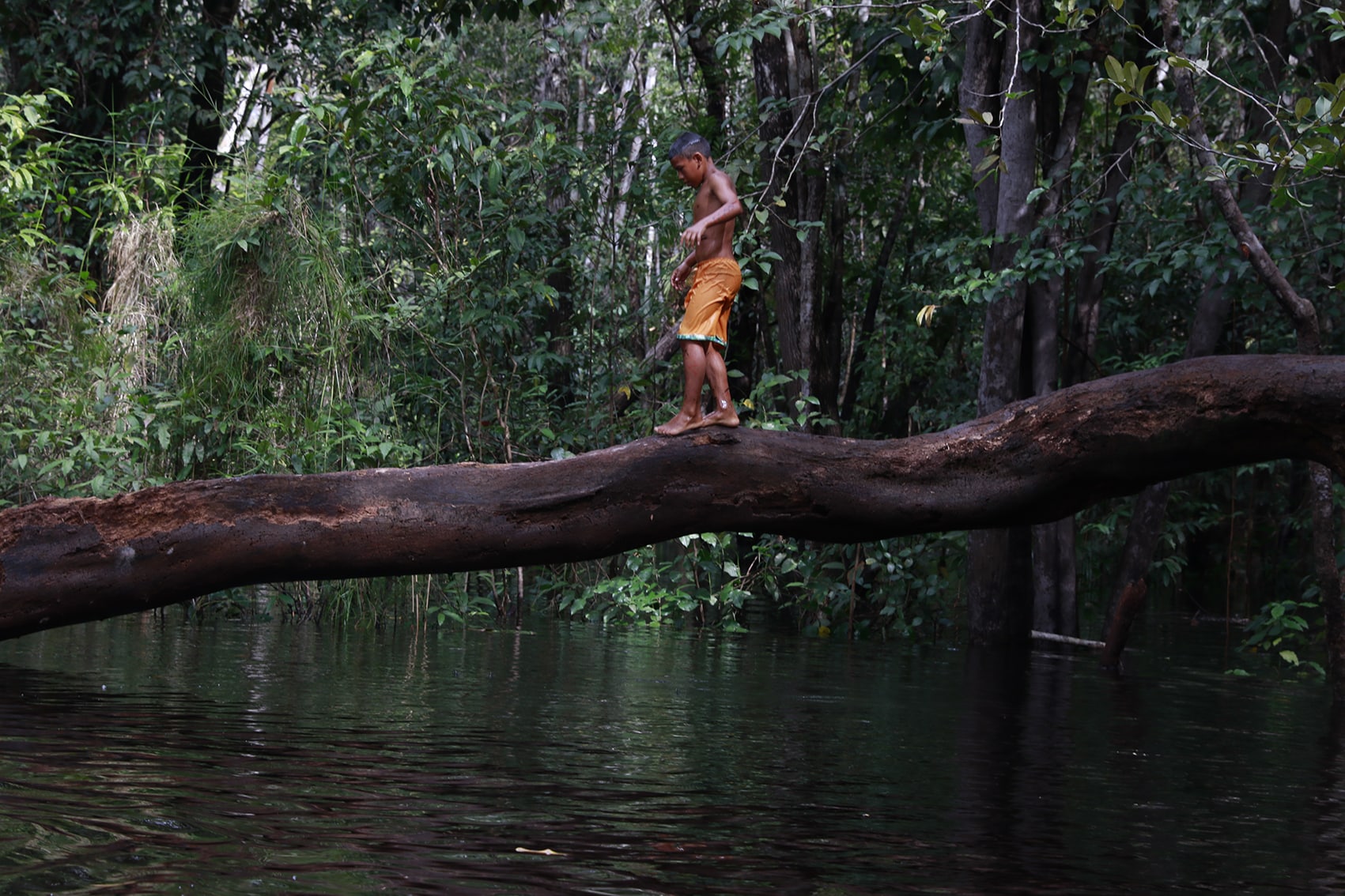 Criança brincando no igarapé na comunidade São Sebastião no rio Negro em Manaus Foto Ricardo Oliveira/Cenarium