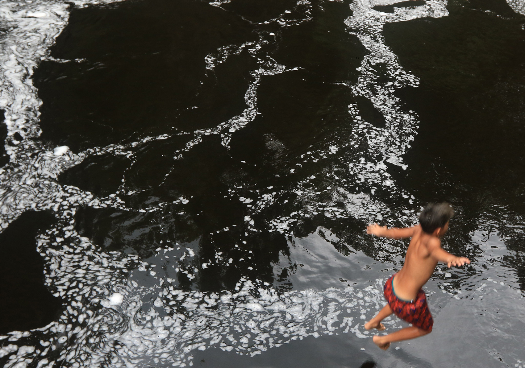 Criança brincando no rio Negro Foto Ricardo Oliveira/Cenarium