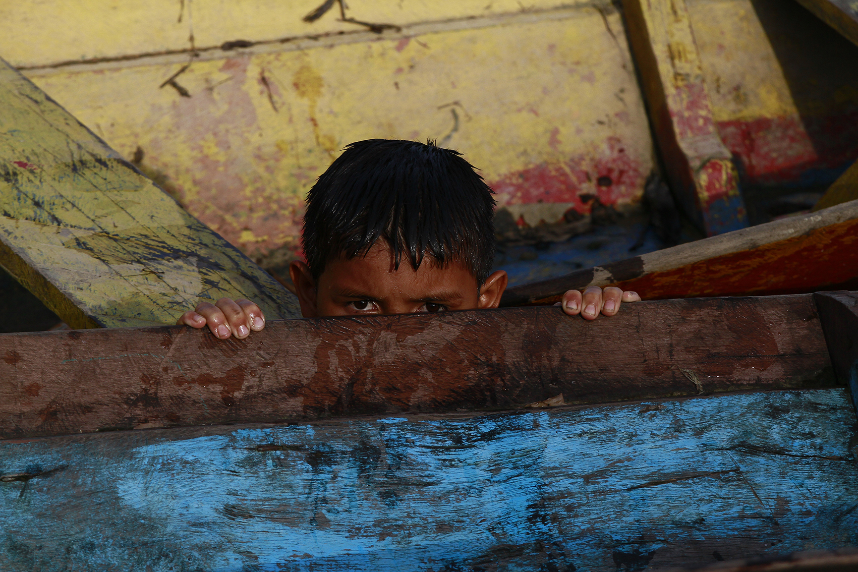 Criança ribeirinha com canoas no rio Negro Foto Ricardo Oliveira/Cenarium