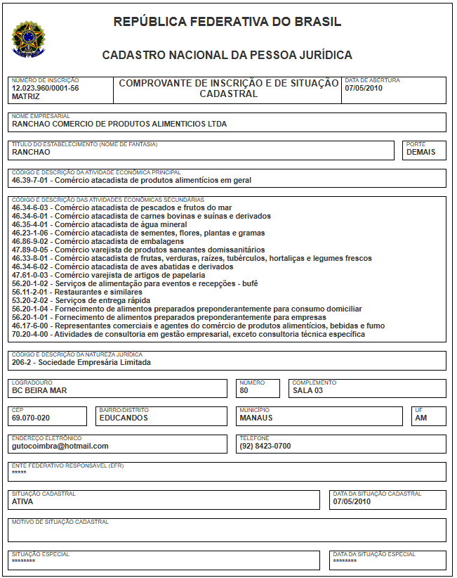 De acordo com o Comprovante de Inscrição e de Situação Cadastral da Receita Federal, o empreendimento funciona em um beco no bairro Educandos, Zona Sul de Manaus. A CENARIUM esteve no endereço e constatou que, no local, funciona o Frigorífico Peixão.