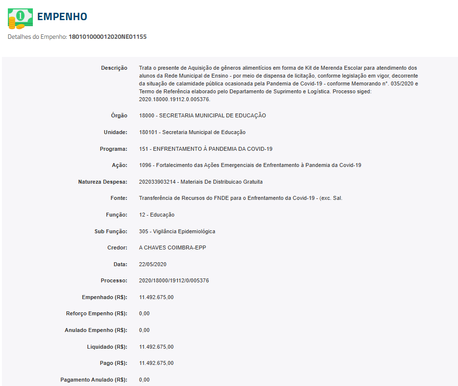 O TCU começou a investigar a Prefeitura de Manaus por superfaturamento de R$ 2,8 milhões na compra de merenda escolar. Por meio do Programa Especial de Atuação no Enfrentamento à Crise da Covid-19 (Coopera), o órgão analisou o processo de aquisição dos “kits de merenda”.