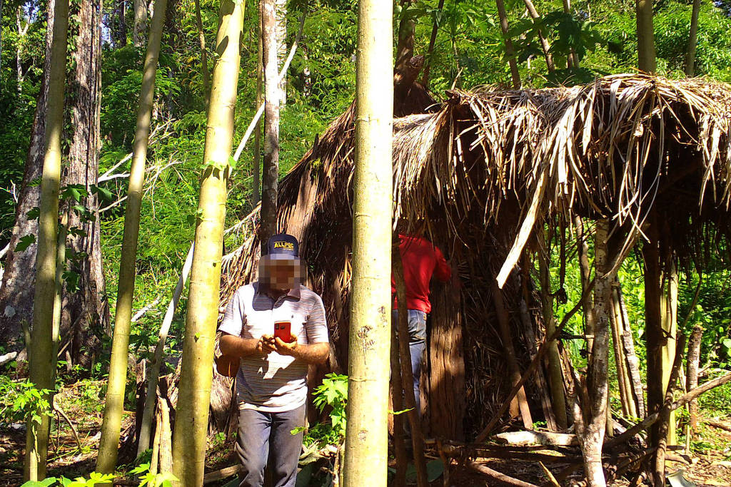 Nas fotos obtidas e publicadas pela Folha, nota-se que os homens circulavam pelo exterior da palhoça, olhando para dentro da casa. Um deles levava um facão pendurado na cintura, quase sempre com o celular na mão.