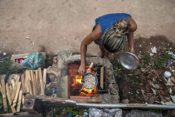 Desde 2021, porém, a prática voltou. Às vezes, ela utiliza uma panela elétrica que recebeu como doação, mas nem sempre isso é possível. “Eu vou preparar a comida no fogão a lenha porque o dinheiro do gás vai sobrar para comprar alguma outra coisa, um pacote de fralda ou de absorvente”, diz.