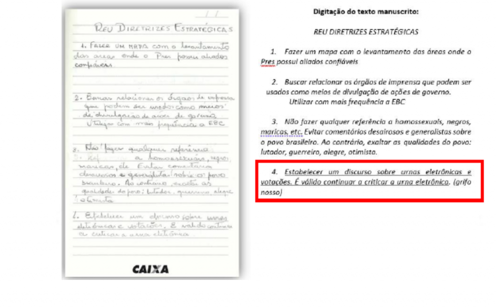 Em 272 páginas, Gonet reconstitui toda a trama engendrada desde março de 2021, que se fortalece no ano eleitoral de 2022, quando ocorreu a reunião com os embaixadores, no Palácio do Planalto, justamente para desacreditar o sistema eleitoral brasileiro, acusando-o de fraudes sem apresentar provas. O ato foi decisivo para o Tribunal Superior Eleitoral (TSE) julgar a ação que tornou Bolsonaro inelegível.
