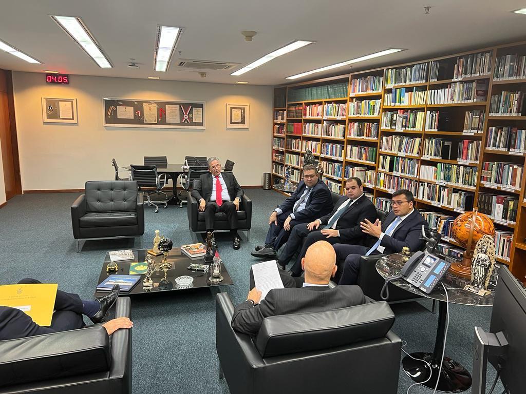 O procurador-geral do Estado, Giordano Bruno Costa da Cruz, o secretário de Estado da Fazenda, Alex Del Giglio, o secretário chefe da Casa Civil, Flávio Antony Filho, o presidente da Assembleia Legislativa do Amazonas (Aleam), deputado Roberto Cidade, e o ministro do Superior Tribunal de Justiça (STF), Mauro Luiz Campbell Marques, acompanharam o governador Wilson Lima na reunião com o ministro Alexandre de Moraes.