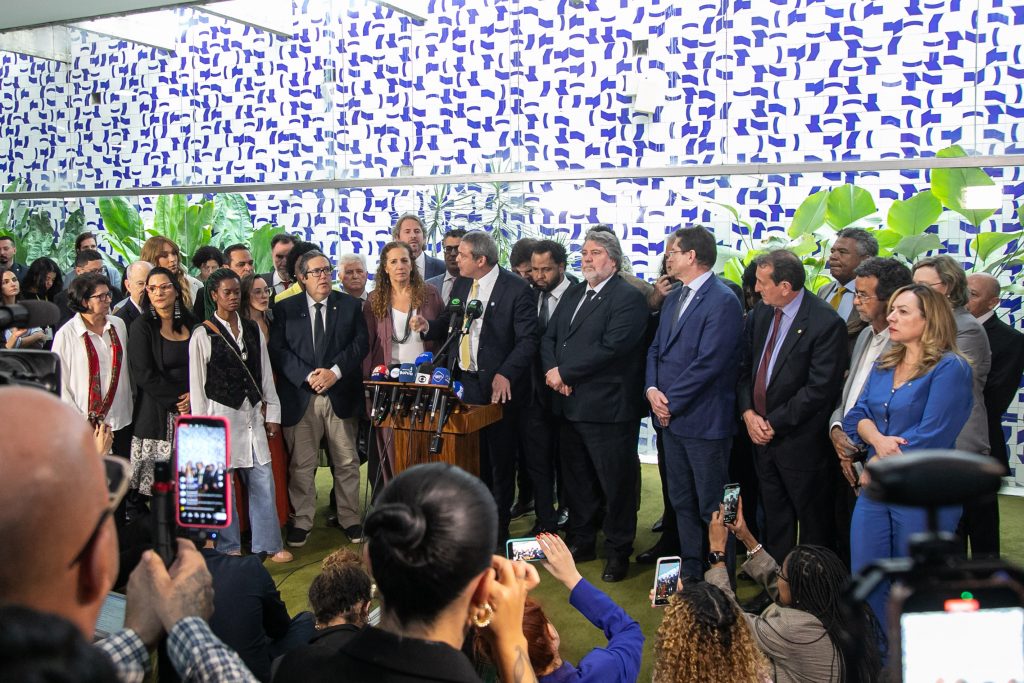 “E eles fazem esse gesto simbólico de fecharem a boca, mas na verdade é a nossa boca que eles estão calando. É a boca da democracia que estão calando e o Parlamento não irá se curvar às vontades, aos desejos da família Bolsonaro. Esta não é a casa da família Bolsonaro. Esta é a casa do povo brasileiro e da democracia. Os trabalhos têm que continuar e o Brasil precisa avançar. Sem anistia para golpista, vamos pautar as agendas de interesse do povo brasileiro e tirar os saqueadores da democracia da cadeira da presidência”, concluiu Hilton.