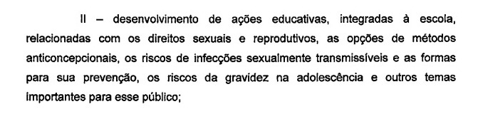 Em um dos trechos do texto, Fargner ainda escreve que o Estado deveria desenvolver ações educativas, integradas à escola, relacionadas com os direitos sexuais e reprodutivos, as opções de métodos anticoncepcionais, os riscos de infecções sexualmente transmissíveis e as formas para sua prevenção, os riscos da gravidez na adolescência e outros temas importantes para esse público, além de divulgar os dados sobre gravidez na adolescência no Estado.