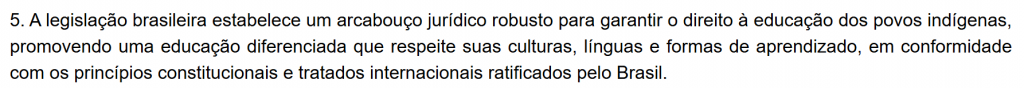 O relator da ação foi o desembargador federal Flávio Jardim. No documento, é pontuado que a educação indígena é um direito fundamental previsto na Constituição. “A legislação brasileira estabelece um arcabouço jurídico robusto para garantir o direito à educação dos povos indígenas, promovendo uma educação diferenciada que respeite suas culturas, línguas e formas de aprendizado, em conformidade com os princípios constitucionais e tratados internacionais ratificados pelo Brasil“, consta no acórdão.